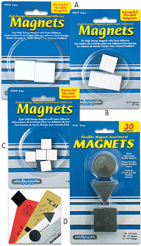 Soft magnetic squares with foam adhesive boast lots of magnetic strength! They provide strength for medium weight craft projects that have uneven or porous surfaces. Available in three sizes for customers' requirements.