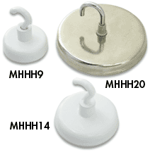 These powerful magnetic assemblies with attached hooks can lift from 9 lbs. to 20 lbs. in a vertical test. Use them to hang a shop light from the inside of a car hood or metal beam. Hang tools, keys or kitchen utensils from metal doors, refrigerators, filing cabinets or any ferrous metal surface. Their range of shop, household, office or point-of-purchase uses are nearly unlimited. |