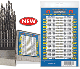 A handy reference chart for conversion of fractions to decimals in inches and metric units. Measurements shown are in 1/32" increments. Display on metal toolboxes or cabinets near work areas. Measures 5" x 8".