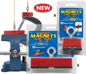 Use to hold and position spray nozzles, hoses, temporary wiring and more. Great for retrieving hand tools and other metal items from waterways. Attach a rope or rod to magnet's eyebolt for retrieving. To allow easy storage in metal toolbox or cabinet, each magnet includes Magnetic ShieldsT to block magnetic strength when not in use.